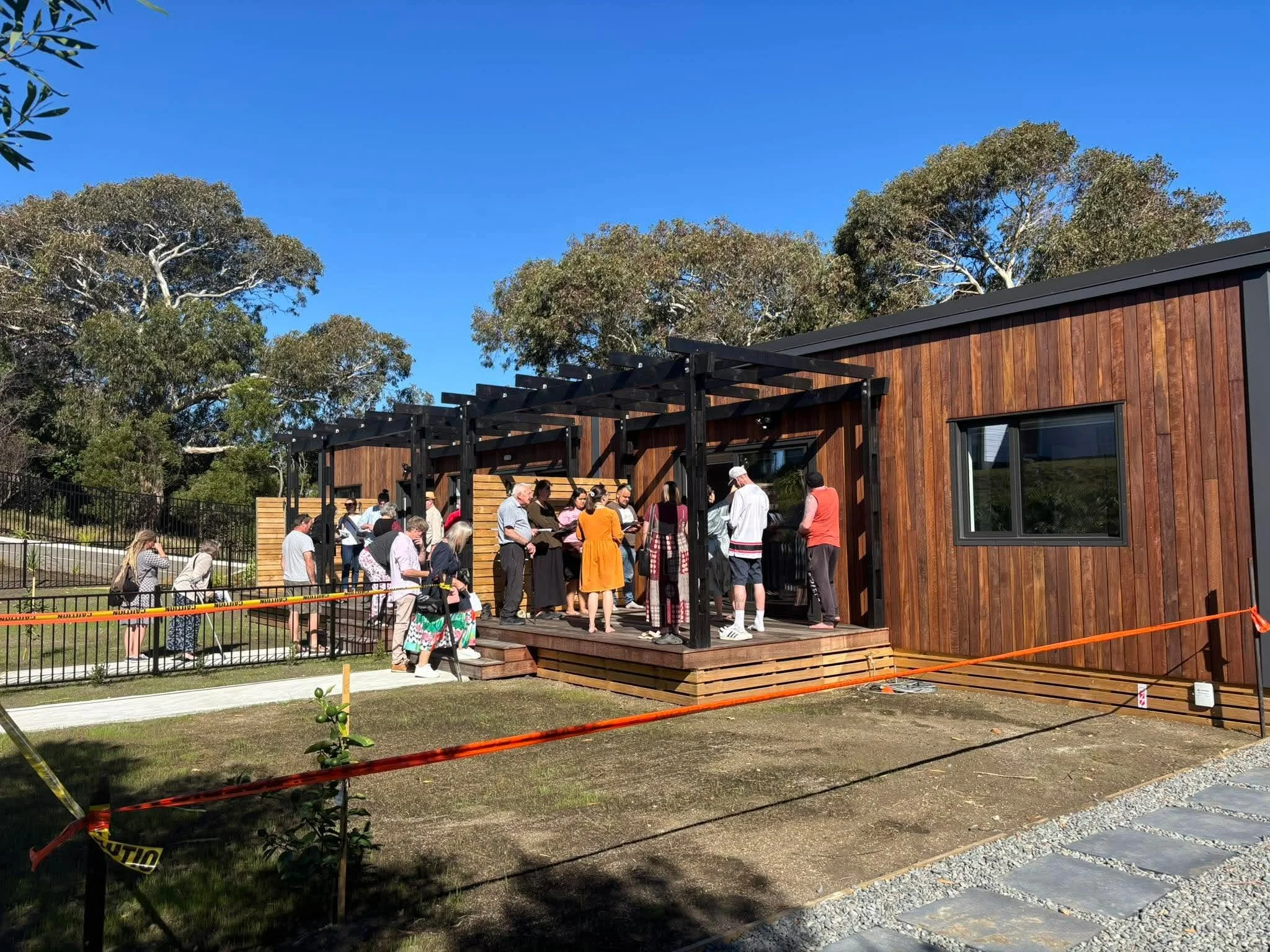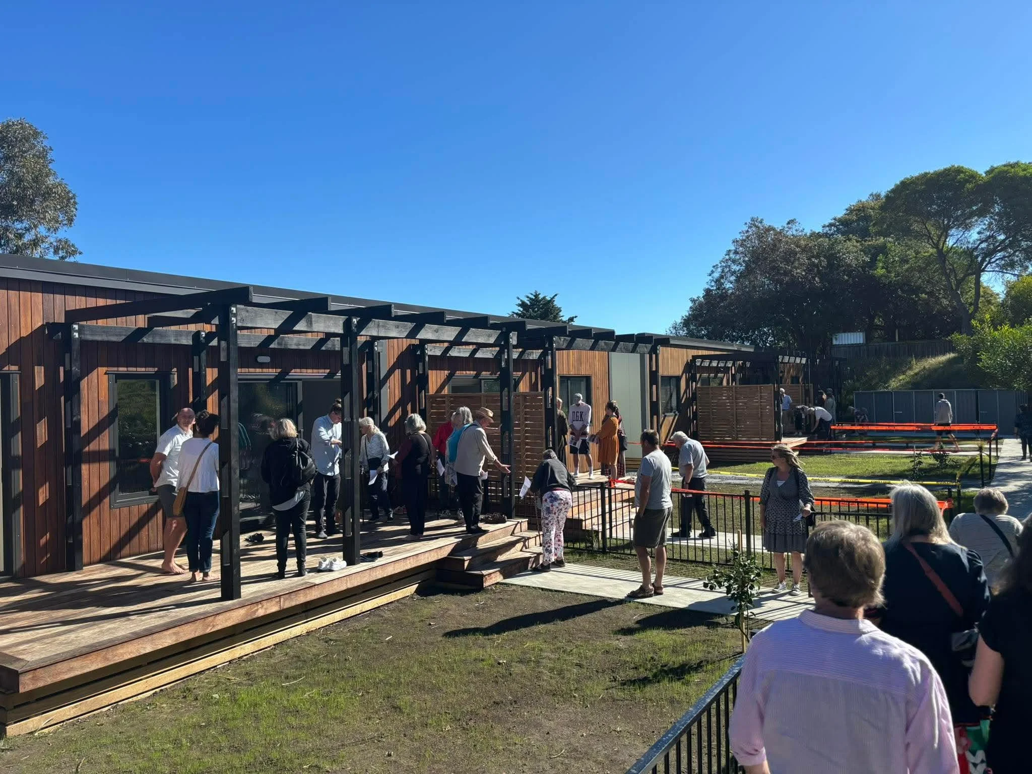 It was a beautiful afternoon in Whanganui as people gathered to bless four new homes built by Bedrock Housing on a site below St Peter’s in Gonville.