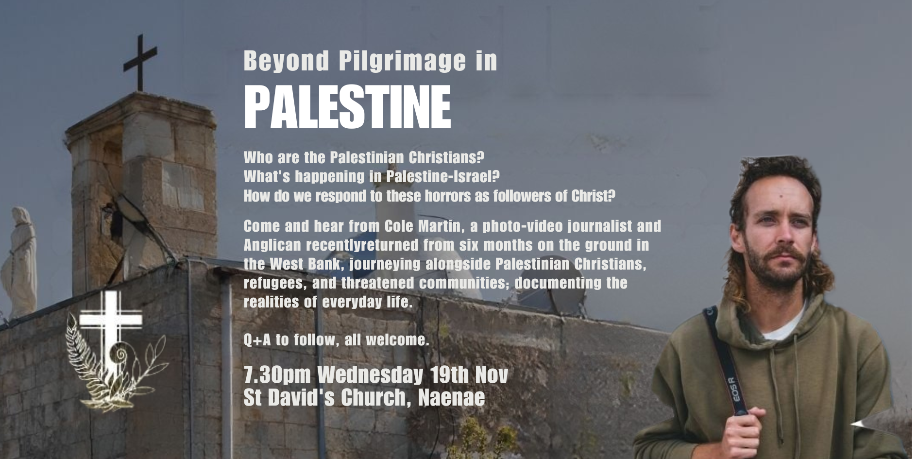 Come and hear from Cole Martin, a photo-video journalist and Anglican recently returned from six months on the ground in the West Bank, journeying alongside Palestinian Christians, refugees, and threatened communities—documenting the realities of everyday life.